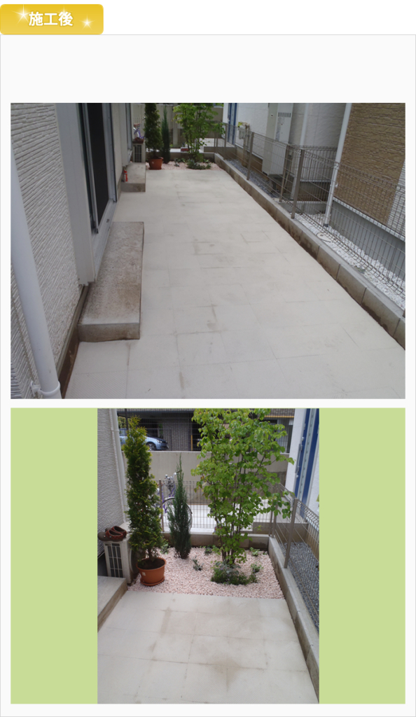 庭が土のままだと、雑草が生えてお手入れが大変。雨の水が跳ねて、ブロックまで汚れてしまうのが、悩みでした。 奥の植栽スペースには、ピンクの砂利を。砂利に色があると、華やかになっていいですね♪ 実例ご紹介 東村山市 O様邸